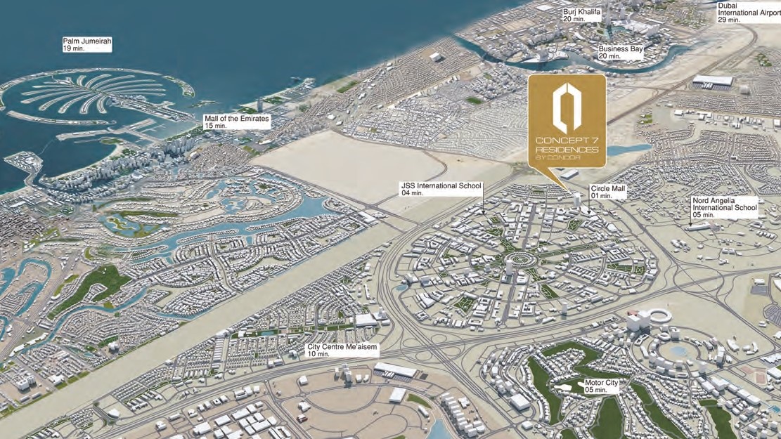 Welcome to Concept 7 where your story, your outlook, your future can change in just a few moments. Concept 7 is not just a building, it is a new way to think, and a new concept for living life. We believe that life is an exhilarating journey, and every moment is an opportunity to embrace new experiences, new passions, and new connections. Concept 7 Residences includes 1, 2 and 3 bedroom apartments and studios at the heart of JVC. Concept 7 has the space and equipment needed to live well, seven days a week of course. A massive floor for fitness supports your every move, and a large swimming pool is ideal for laps or just chilling. |